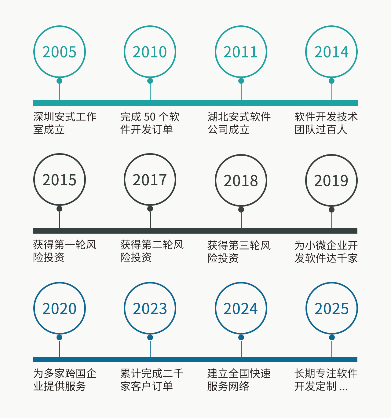 安式软件公司拥有61项软著专利,是国家认定的高新技术企业、双软企业,入选隆中人才计划,并通过了国际软件开发能力的评估CMMI相关认证,是阿里巴巴、国家电网、中控、SAP等企业软件供应商。